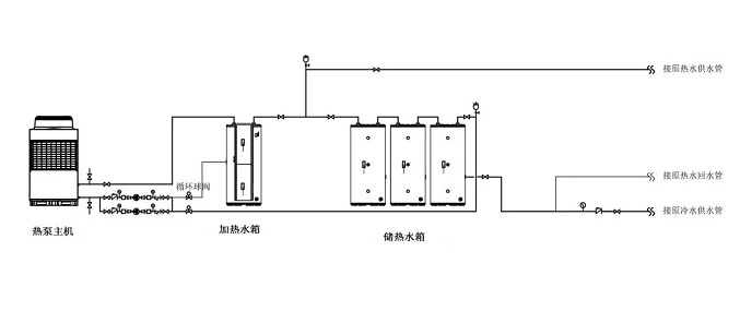 更為重要的是,在系統層面有著更為突出的節能效果:整個系統采用模塊化承壓水箱,憑借閉式系統熱水利用率高,隨用隨補等特點,系統熱水儲量僅為傳統熱泵系統的1/3左右,原廠生產的水箱保溫性能也遠優于普通開式水箱,因而系統散熱損失大大降低;承壓水箱在供水時也無需對熱水進行增壓,系統中水泵的電耗也大大減少。系統綜合能耗較傳統熱泵系統可以降低30%,每年可以節省一筆可觀的運行費用。