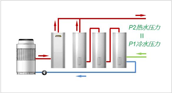 非承壓系統,熱水由增壓泵提供壓力,冷水由市政管網提供壓力,冷、熱水壓力不同源無法保持平衡,并且開式水箱頂部補水,易造成水箱內冷熱水混合,末端用水忽冷忽熱。